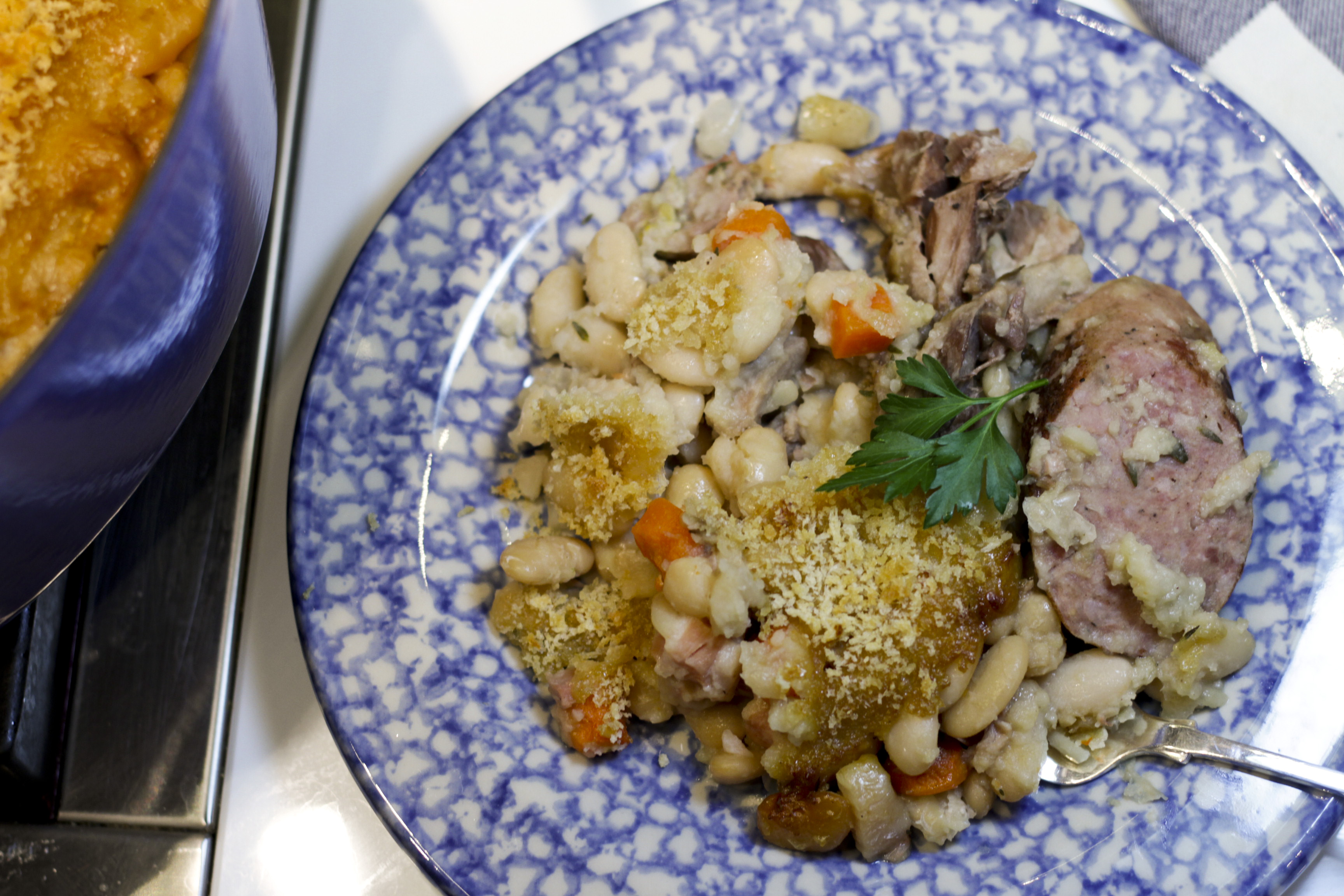 I couldn’t wait to make cassoulet again — although everyday life and engagements often interfere with good intentions. The ingredient list is long. The process is lengthy. However, cassoulet is one of those classic dishes that’s worthy of the time and efforts we put into it. It was snowing the other day when I made the cassoulet; it ended up to be a perfect day. Peaceful and uninterrupted time spent in the kitchen. Plus an amazing bubbling potful of cassoulet to boot. What can be better? In the end, making cassoulet has a lot to do with investing in the process.