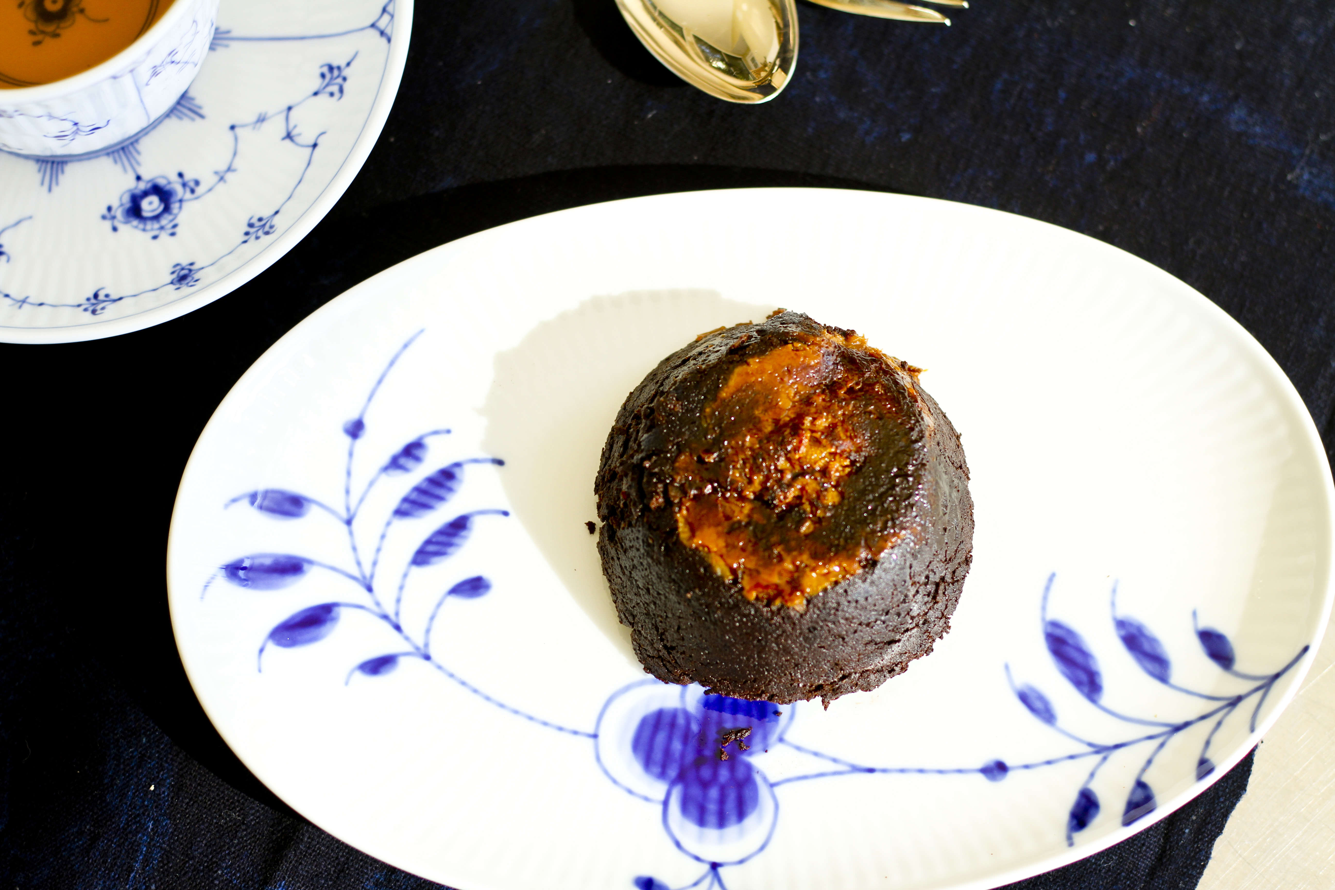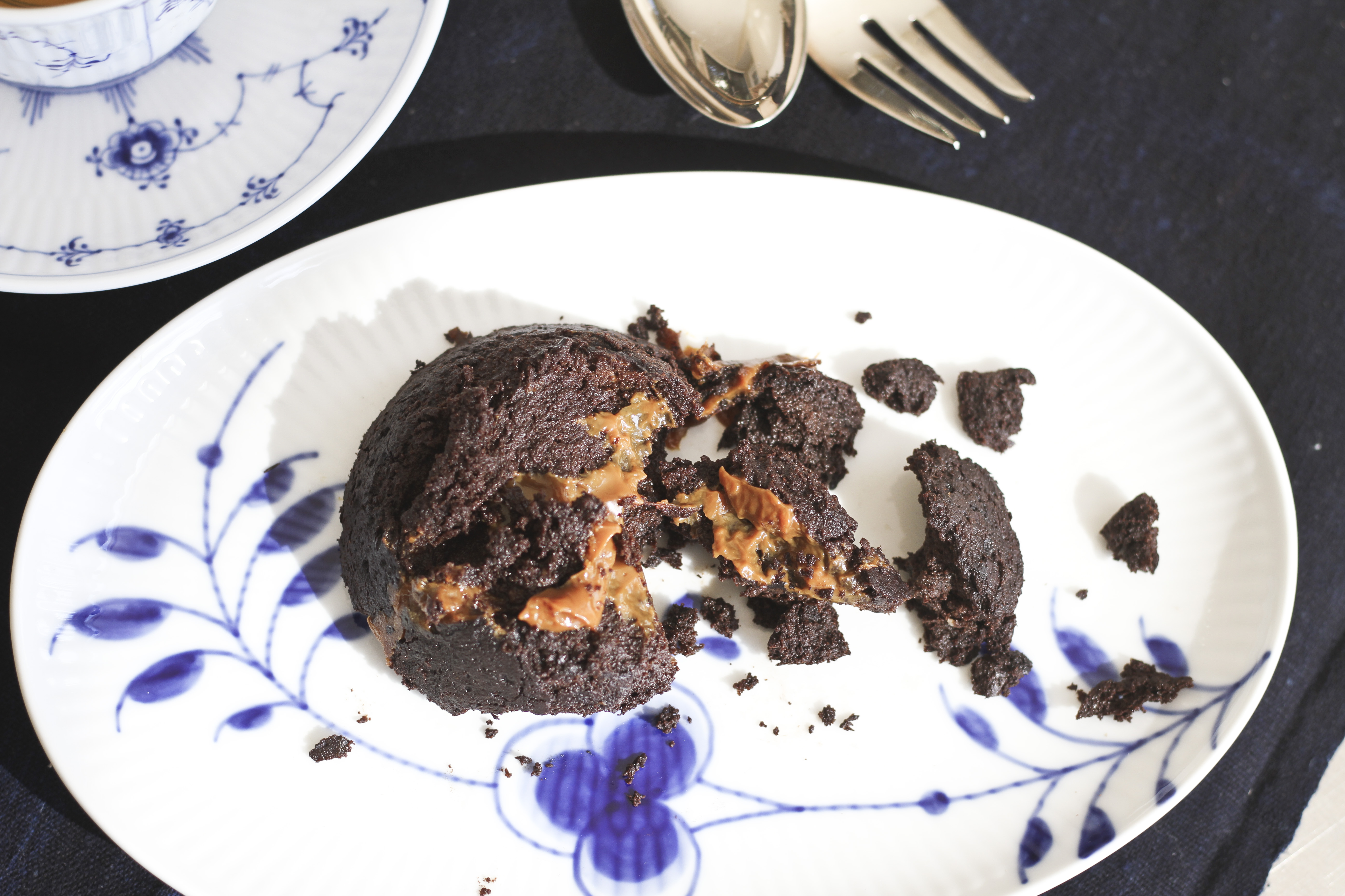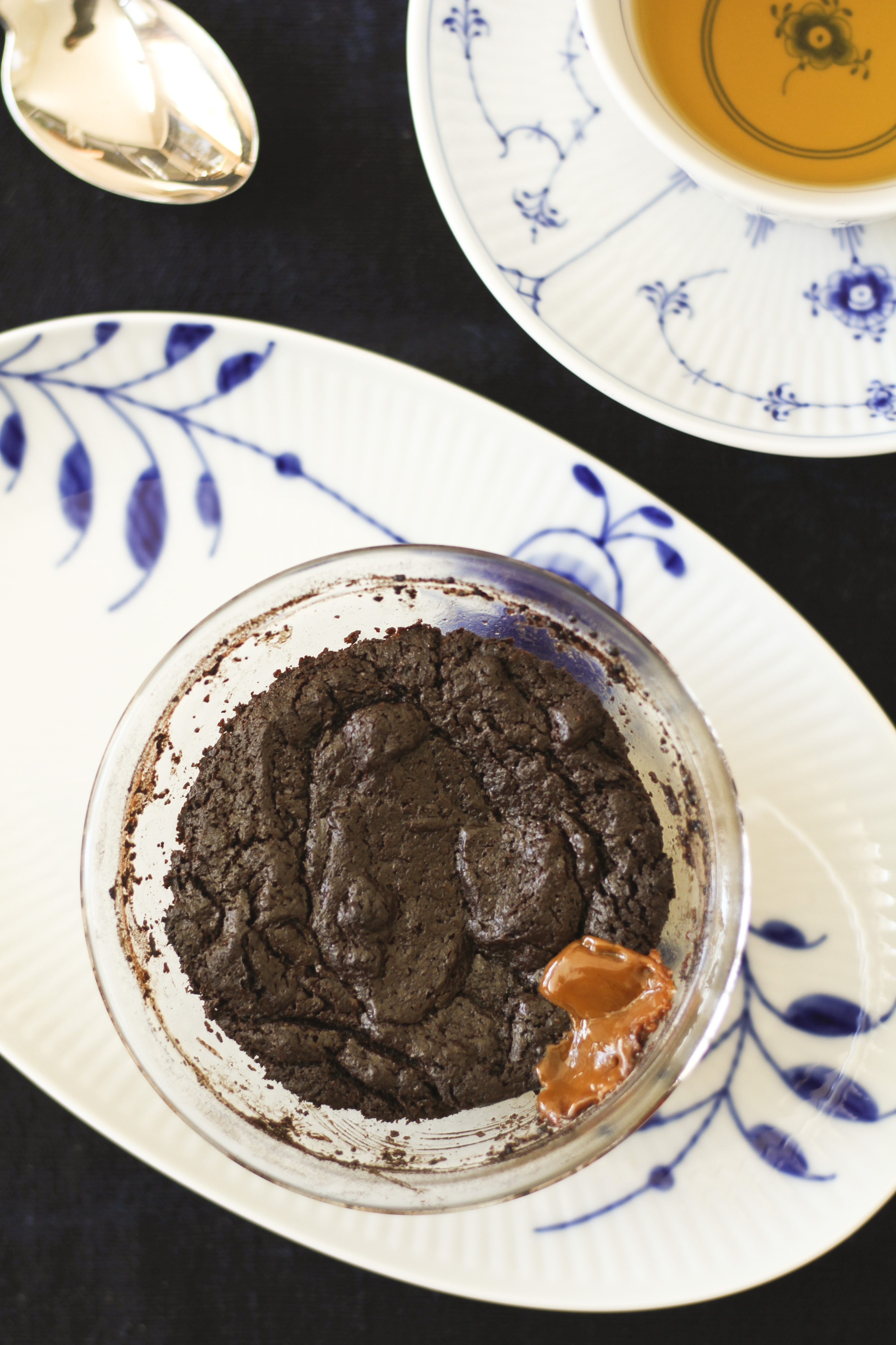 One thing that strikes me is the multi-dimensional flavor of these individual chocolate cakes with dulce de leche and fleur de sel. As the name and the ingredients of the cakes imply: there are the bittersweet chocolate, the sweet caramel of the dulce de leche and the saltiness of the fleur de sel. Besides the bitter, the sweet and the salty taste, there is also the fat from the egg yolk. As a result, the cakes cover the entire spectrum of the flavor chart, no wonder they taste so amazing.