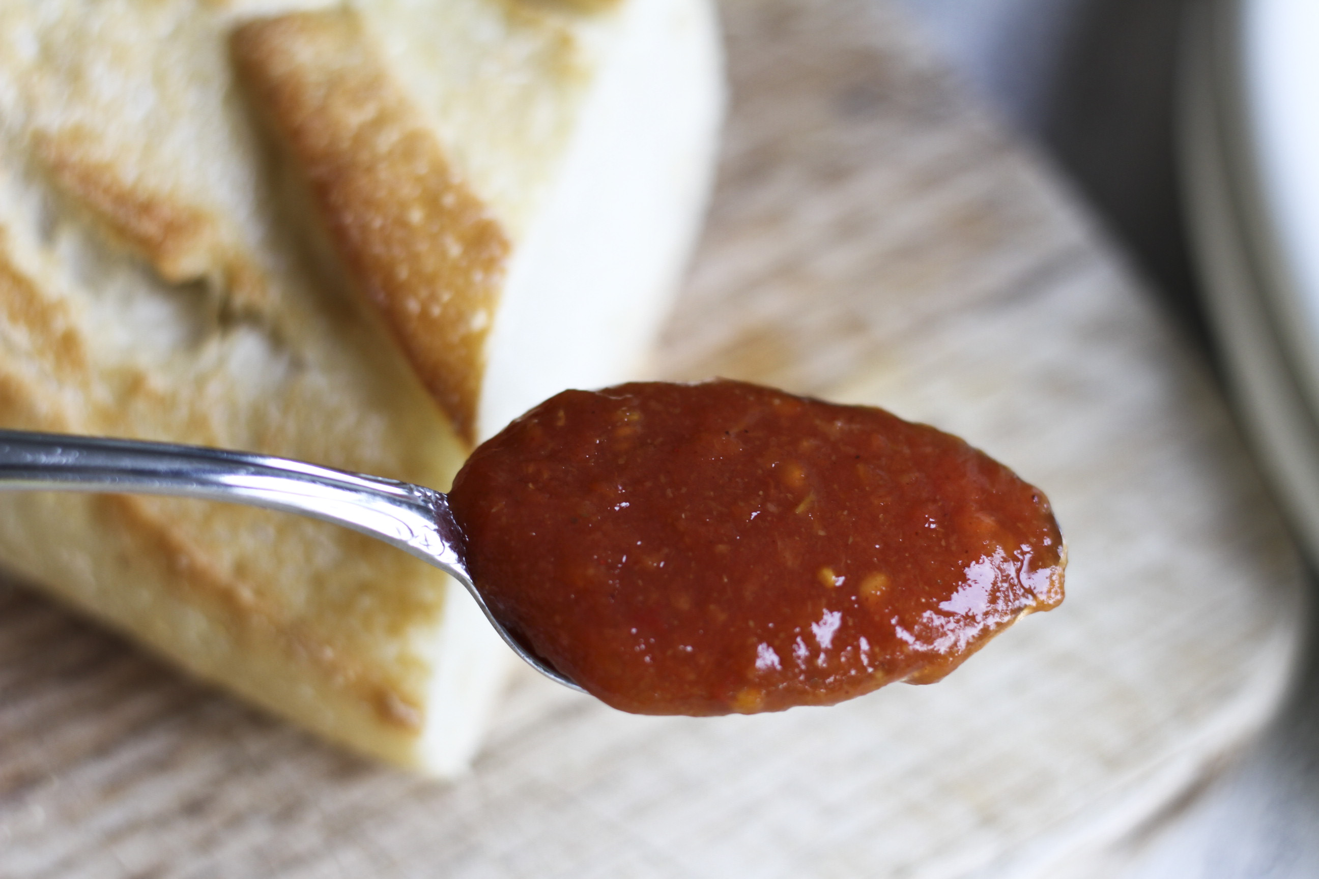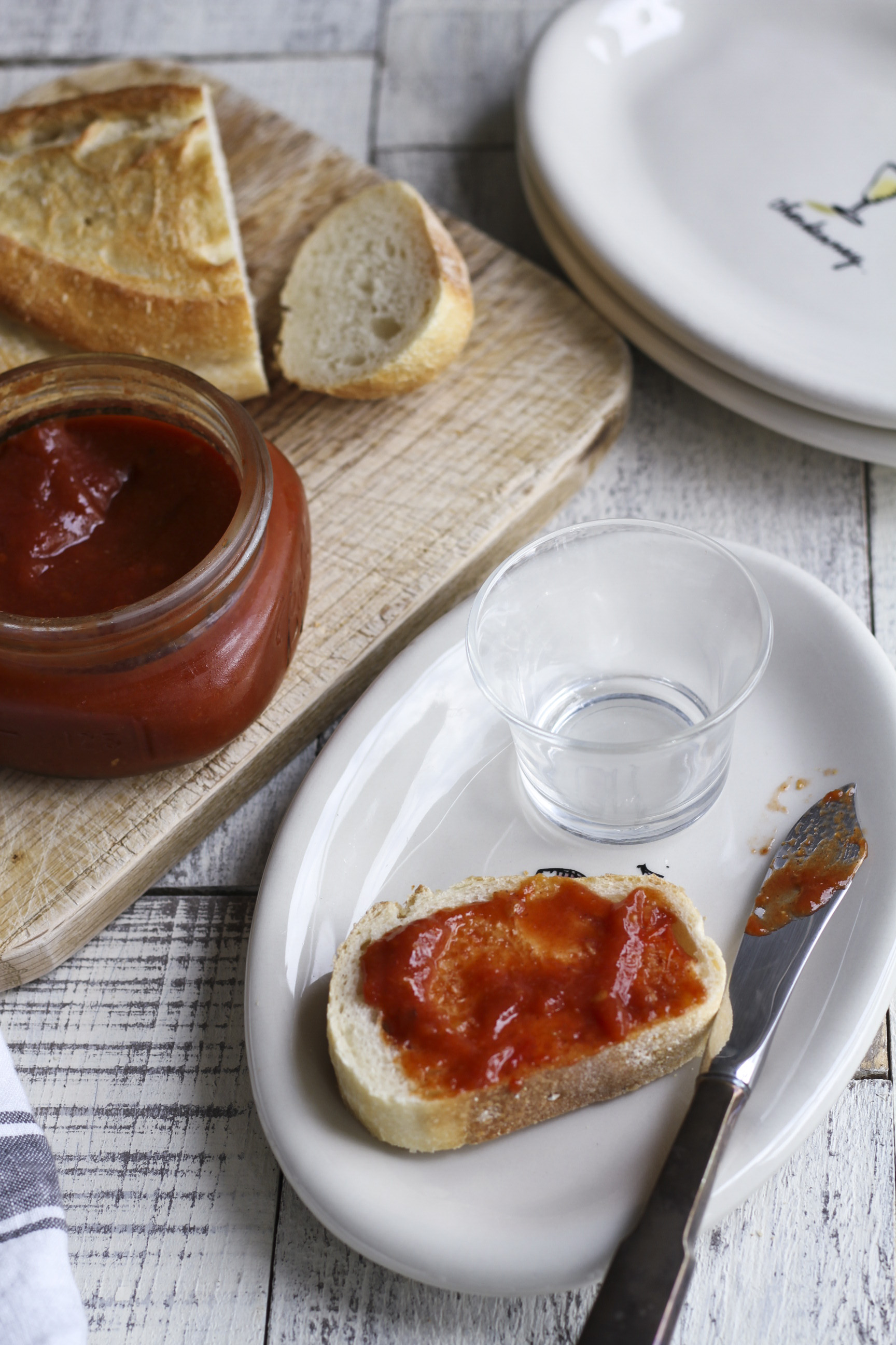 The first tomato jam recipe that pops up on Google search is the New York Times recipe from Mark Bittman. Surely, you can count on a basic recipe about anything from Bittman. More than that, his tomato jam recipe is inspired by an inventive tapas bar in Barcelona called Quimet y Quimet. What other place would give you a better plate of Pa amb tomàquet, with simple bread and tomato rubbed all over it, than in Barcelona? Often, the image of Pa amb tomàquet and the sensational food memory of Barcelona make my mouth water.